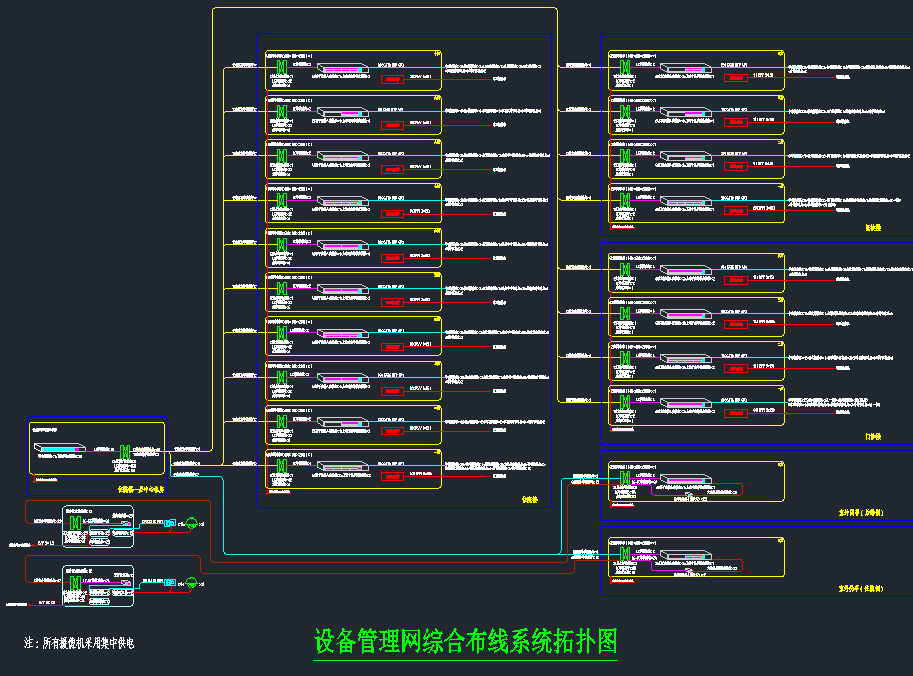 系統(tǒng)采用六類結(jié)構(gòu)化綜合布線,其中垂直區(qū)系統(tǒng)數(shù)據(jù)部分采用12芯單模光纖;語音采用五類50對大對數(shù)線纜,水平區(qū)系統(tǒng)數(shù)據(jù)/語音均采用六類非屏蔽線纜;設(shè)備區(qū)系統(tǒng)包含各類配線架(網(wǎng)絡(luò)配線架、語音配線架、光纖配線架和理線器);管理區(qū)系統(tǒng)主要是包含網(wǎng)絡(luò)設(shè)備的管理(如:服務(wù)器)。